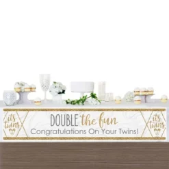 Big Dot Of Happiness It’s Twins – Gold Twins Baby Shower Decorations Party Banner