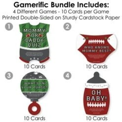 Big Dot Of Happiness End Zone – Football – 4 Baby Shower Games – 10 Cards Each – Gamerific Bundle
