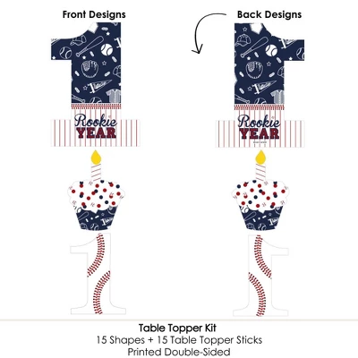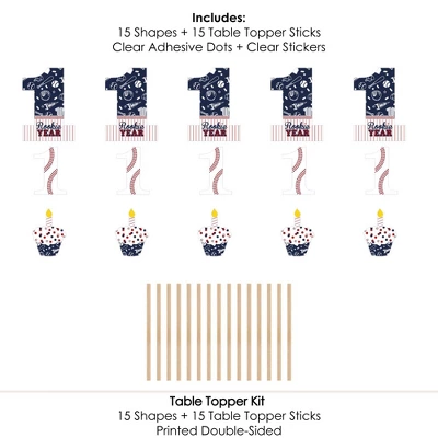 1st Birthday Batter Up – Baseball Centerpiece Sticks INCLUDES 15 1st Birthday Batter Up – Baseball table toppers in three different shapes, 15 sticks and stickers for easy assembly. Baseball 1st birthday party table decorations are perfect for a first birthday party. Batter Up – Baseball 1st Birthday Centerpiece Sticks SIZE five Number One table toppers, 7.75″ wide x 10.75″ tall; five Cupcake table toppers, 5″ wide x 7″ tall; and five Number One table toppers, 4.75″ wide x 7″ tall. The unique design and variety of pieces makes this table decoration kit an impressive addition to any baseball first birthday theme party. EASY PARTY DECOR: 1st Birthday Batter Up – Baseball table decorations can be used as centerpieces when attached to the included sticks and inserted into vases or floral arrangements. They easily accent your first birthday party candy buffet when you add them to apothecary jars. Table toppers are also a great addition to any photo booth. The large shaped cut outs will make your party pics instantly shareable. PREMIUM PARTY SUPPLIES: 1st Birthday Batter Up – Baseball table toppers are professionally printed on heavy-duty cardstock paper with a photo-like shine. They are individually inspected and carefully packaged by hand with sticks and stickers for easy assembly. Get creative with your DIY party ideas! MADE IN THE USA: 1st Birthday Batter Up – Baseball – First Birthday Party Centerpiece Sticks are designed and manufactured at our Wisconsin facility using materials that are Made in America.