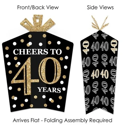 Adult 40th Birthday – Gold Fold and Flare Centerpieces INCLUDE: 10 heavy-duty paper centerpieces in our Adult 40th Birthday – Gold theme. Each centerpiece has art on all four sides and starburst top for an impressive display. Some simple folding assembly required. EASY TABLE DECOR: Each Adult 40th Birthday – Gold centerpiece SIZE 5 inches wide (front/back) x 3 inches wide (sides) x 10.5 inches tall. This 10 count table decorations set requires easy folding to flare out each centerpiece at your desired look. Easy DIY folding assembly: Use a flat surface to fold along the scored creases to stand the centerpiece upright and be able to balance on its own. PARTY CENTERPIECES: Style your birthday party with Adult 40th Birthday – Gold table centerpiece decorations. Place in the center of multiple tables or add to all areas of the party such as welcome entrance, gift table, or dessert buffet for an extra flair. HIGH-QUALITY PARTY SUPPLIES: Adult 40th Birthday – Gold fold and flare centerpieces are professionally printed double-sided on sturdy cardstock paper with a photo-like shine. They are individually inspected and carefully packaged by hand. Fold and flare centerpieces will arrive flat, with easy folding required for quick assembly. MADE IN THE USA: Adult 40th Birthday – Gold fold and flare centerpieces are designed and manufactured at our Wisconsin facility using materials that are Made in the USA. Adult 40th Birthday – Gold table centerpieces use a No-Mess Glitter Print: Our table decorations are designed with a printed image of glitter, eliminating glitter flake while maximizing bling effect!