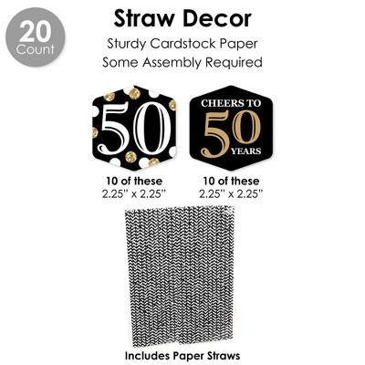 DIY WRAPPERS includes: 20 total reversible wrappers that are 10.75″ wide x 2″ tall. When wrapped, they can accommodate favors 1.75″ to 2.5″ in diameter. These wrappers for a Birthday Party are easy to secure on a variety of items! CUPCAKE WRAPPERS includes: 20 adjustable cupcake wrappers 1.75″ – 2.5″ wide x 1.75″ tall. Adult 50th Birthday – Gold cupcake wrappers will fit over cupcake liners on standard and medium-sized cupcakes and are reversible for a coordinated look. Secure cupcake wrappers by sliding the tab into appropriate slit. TREAT PICKS includes: 20 cut-outs 2″ wide x 2.25″ tall & clear treat picks 4″ tall. Cheers to 50 Years paper cut-outs come in 2 designs. Assembly stickers are included for easy DIY required assembly. FAVOR GIFT TAGS includes: 20 gift tags 3.5″ wide by 2.75″ tall & satin ribbon. Write a special message on the back side of Adult 50th Birthday – Gold gift tags for a personal touch then attach to favors with ribbon. STRAW DECOR includes 20 cut-outs with 2 designs10 of each, size 2.25″ wide by 2.25″ tall and chevron striped paper straws – 7.75″ tall. Shaped cut-outs are professionally printed on sturdy cardstock paper. For easy assembly, create your stylish drinks by attaching Cheers to 50 Years shaped cut-outs to paper straws with clear stickers included. Favor party pack is designed and manufactured at our Wisconsin facility using materials that are Made in the USA. Adult 50th Birthday – Gold favor pack uses a No-Mess Glitter Print: Our party kits are designed with a printed image of glitter, eliminating glitter flake while maximizing bling effect!
