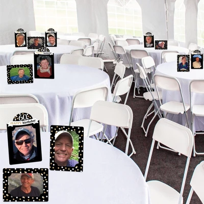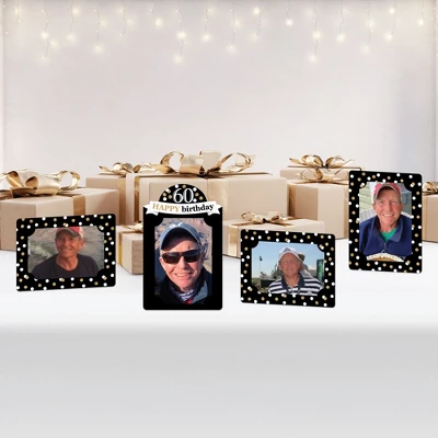 Adult 60th Birthday – Gold Paper Photo Frames includes a set of 12 picture frames with stand that are suitable for 4×6 photographs. Six vertical frames come with a round shaped top and the other six frames come in a standard rectangular shape that can be displayed horizontally or vertically. Decorative Display: Show off your guest of honor’s photos with the Adult 60th Birthday – Gold paper frames. Paper photo frames are perfect for displaying pictures on bookshelves, welcome tables, tablescape centerpieces, and fireplace mantel decorations. Easy Assembly: Attach the stand to the frame by inserting the tabs into corresponding slots. Next, fold the sides of the stand towards the center and fold down the support piece of the stand until it rests in the notches. Finally, secure your photos using the corner tabs! High-Quality Supply: Adult 60th Birthday – Gold paper frames are professionally printed double-sided on heavy-duty cardstock paper with a photo-like shine. Frame with round top measures 5.5 inches wide by 8.75 inches tall. Standard rectangle frame measures 7.5 inches wide by 5.5 inches tall. Each stand measures 5.5 inches wide by 5.5 inches tall. Made In The USA: Adult 60th Birthday – Gold Paper Photo Frames are designed and manufactured at our Wisconsin facility using materials that are Made in the USA. Adult 60th Birthday – Gold Paper Frames uses a No-Mess Glitter Print: Our Frames are designed with a printed image of glitter, eliminating glitter flake while maximizing bling effect!