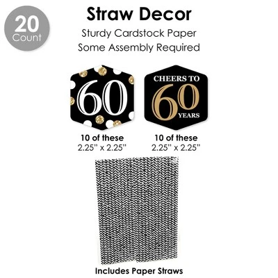 DIY WRAPPERS includes: 20 total reversible wrappers that are 10.75” wide x 2” tall. When wrapped, they can accommodate favors 1.75” to 2.5” in diameter. These wrappers for a Sixtieth Birthday Party are easy to secure on a variety of items! CUPCAKE WRAPPERS includes: 20 total cupcake wrappers that adjust to fit 1.75” – 2.5” wide x 1.75” tall. Adult 60th Birthday – Gold cupcake wrappers will fit over cupcake liners on standard and medium-sized cupcakes and are reversible for a coordinated look. Secure cupcake wrappers by sliding the tab into appropriate slit. TREAT PICKS includes: 20 total shaped cut-outs – 2” wide x 2.25” tall and clear treat picks – 4” tall. Gold 60th Themed paper cut-outs come in 2 designs that are a great for styling food being served. Assembly stickers are included for easy DIY required assembly. FAVOR GIFT TAGS includes: 20 total gift tag paper cut-outs – 3.5” wide by 2.75” tall and satin ribbon. Write a special message in the blank space on the back side of Adult 60th Birthday – Gold gift tags for a personal touch. For easy assembly, attach to party favors with the ribbon. STRAW DECOR includes 20 total shaped cut-outs with 2 designs -10 count each, size 2.25” wide by 2.25” tall and chevron striped paper straws – 7.75” tall. Shaped cut-outs are professionally printed on sturdy cardstock paper. For easy assembly, create your stylish drinks by attaching Gold 60th Themed shaped cut-outs to paper straws with clear stickers included. Favor party pack is designed and manufactured at our Wisconsin facility using materials that are Made in the USA.