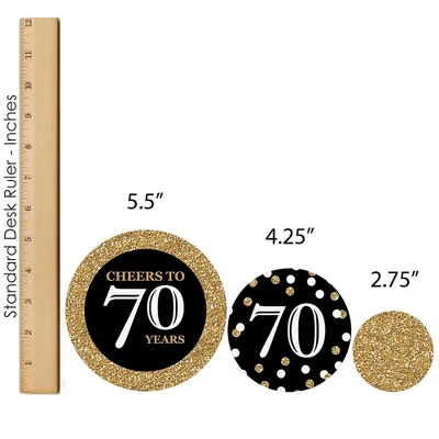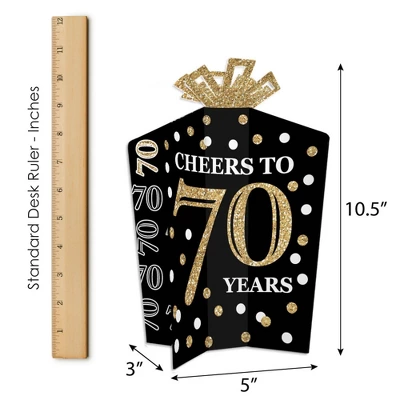 Adult 70th Birthday Terrific Table Centerpiece Kit INCLUDES 27 paper confetti and 3 fold and flare centerpieces that will look amazing at your Birthday Party. Make a statement at your celebration with this easy DIY table kit! CIRCLE CONFETTI includes 27 cut-out circle shapes in three different sizes – 12 small circles size 2.75 in, 9 medium circles size 4.25 in, and 6 large circles size 5.5 in. Scatter the Black and Gold themed confetti across your dessert or buffet table for an impressive addition to your decorations. FOLD AND FLARE CENTERPIECES includes 3 table decorations measure 5 inches wide (front/back) x 3 inches wide (sides) x 10.5 inches tall. These paper table decors require easy folding to flare out each centerpiece for your desired look. Simply, use a flat surface to fold along the scored creases to stand the centerpiece upright and be able to balance on its own. Both Fold and Flare Centerpieces & Confetti Are Professionally Printed Double-Sided on Sturdy Cardstock Paper MADE IN THE USA: Adult 70th Birthday Terrific Table Centerpiece Kit is designed and manufactured at our Wisconsin facility using materials that are Made in the USA. Adult 70th Birthday Terrific Table Centerpiece Kit uses a No-Mess Glitter Print: Our centerpieces and confetti are designed with a printed image of glitter, eliminating glitter flake while maximizing bling effect!