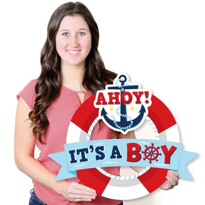 Ahoy It’s a Boy Wreath INCLUDES 1 base piece, 1 shaped top piece, and satin ribbon for hanging. Requires some easy assembly. This baby shower wreath is an attractive way to welcome everyone to your home in style! DOOR-PERFECT: Ahoy It’s a Boy Wreath is SIZE 22.5 inches wide x 19 inches high. Made of sturdy PVC Material with single-sided print, this decorative wreath is a spectacular accent to any front door—at home or at work! Waterproof and weather resistant, hang on your outside door and reuse again and again. EASY ASSEMBLY: Ahoy It’s a Boy Wreath requires some easy assembly. String ribbon through top piece and base piece, pulling ribbon through to secure pieces together. Tie ribbon ends and hang. Holes are pre-cut for your convenience. HIGH-QUALITY DECOR: Ahoy It’s a Boy Wreaths are professionally printed on sturdy PVC Material with single-sided print. They are individually inspected and carefully packaged by hand with coordinating ribbon. CARE TIP: For best results, display your Wreath in temperatures no higher than 130 degrees Fahrenheit. MADE IN THE USA: Ahoy It’s a Boy Wreaths are designed and manufactured at our Wisconsin facility using materials that are Made in the USA.