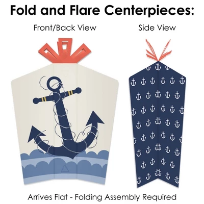 Ahoy – Nautical Terrific Table Centerpiece Kit INCLUDES 27 paper confetti and 3 fold and flare centerpieces that will look amazing at your Baby Shower or Birthday Party. Make a statement at your celebration with this easy DIY table kit! CIRCLE CONFETTI includes 27 cut-out circle shapes in three different sizes – 12 small circles size 2.75 in, 9 medium circles size 4.25 in, and 6 large circles size 5.5 in. Scatter the Blue Anchor themed confetti across your dessert or buffet table for an impressive addition to your decorations. FOLD AND FLARE CENTERPIECES includes 3 table decorations measure 5 inches wide (front/back) x 3 inches wide (sides) x 10.5 inches tall. These paper table decors require easy folding to flare out each centerpiece for your desired look. Simply, use a flat surface to fold along the scored creases to stand the centerpiece upright and be able to balance on its own. Both Fold and Flare Centerpieces & Confetti Are Professionally Printed Double-Sided on Sturdy Cardstock Paper MADE IN THE USA: Ahoy – Nautical Terrific Table Centerpiece Kit is designed and manufactured at our Wisconsin facility using materials that are Made in the USA.