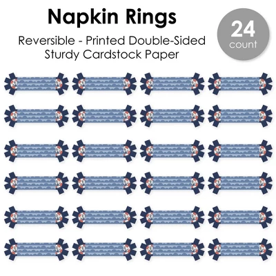 Ahoy – Nautical Napkin Rings includes 24 paper napkin rings with an interlocking tassel-shaped end. Wrap your napkins and cutlery in these paper rings for an elevated look at your Birthday Party or Baby Shower. Tableware Accent: Ahoy – Nautical rings will add a festive flare to your napkins, table linens, and cutlery. From large banquets to small gatherings with loved ones, these napkin rings have that extra charm for a next-level table setup. Easy DIY: Blue Anchor Themed napkin holders are a no-fuss solution for your table setting decor and require quick and easy assembly. Start by forming the napkin ring into a circle and attach the tassels by interlocking the slits. Slide the tassels together until the art matches up and insert your napkin and dinnerware. High-Quality Supply: Ahoy – Nautical Napkin Rings are reversible and professionally printed double-sided on sturdy cardstock paper with a photo-like shine. Each paper rings measure 2.25β wide x 2.25β tall when assembled. Napkin Rings arrive flat and will require some easy assembly. Made In The USA: Ahoy – Nautical Napkin Rings are designed and manufactured at our Wisconsin facility using materials that are Made in the USA.