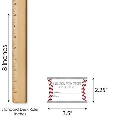 Batter Up – Baseball Candy Guessing Game INCLUDES 1 sign with a built-in stand and 40 guessing cards that will look great at your Baby Shower or Birthday Party. Sign measures 7.5” wide by 11” tall and cards measure 3.5” by 2.25” tall. Candy and jar are not included. HOW TO PLAY: Draw attention to your candy jar with the Batter Up – Baseball Candy Guessing Game! Place the sign and cards next to your candy jar. Guests can then take a card and guess how many candies are in the jar. The closest guess wins! EASY ASSEMBLY: To use, fold the sides of the stand towards the center. Then, fold down the support piece of the stand until it rests in the notches. Finally, display your Sports sign next to your container of candy. HIGH-QUALITY SUPPLY: Batter Up – Baseball Candy Guessing Game is professionally printed double-sided on sturdy cardstock paper with a photo-like shine. They are individually inspected and then carefully packaged by hand. Sign arrives flat with some easy assembly required. MADE IN THE USA: Batter Up – Baseball Candy Guessing Game is designed and manufactured at our Wisconsin facility using materials that are Made in the USA.