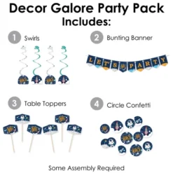 - Decor Galore Party Pack Includes: Swirls, Bunting Banner, Table Toppers, and Circle Confetti – Professionally Printed on Sturdy Cardstock Paper With Some Assembly Required