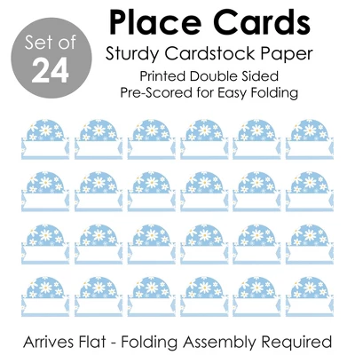 Blue Daisy Flowers Place Cards INCLUDES 24 individual cards that measure 3.5″ wide x 2.5″ tall when assembled. Easy to use, these tabletop accents are perfect to use at your next Floral Party. VERSATILE IN USE: Whether it’s a small party or large gathering, the Boho Floral Place Cards can be used in a variety of ways. Handwrite words in the blank space and then set them on the buffet table, as part of a place setting, or consider using them for an icebreaker activity. EYE-CATCHING DESIGN: Featuring crisp graphics with an innovative cut design, Blue Daisy Flowers Place Cards will easily draw in attention without taking up too much space. To assemble, push back the top outer edge, revealing the half-circle top. Fold along the pre-scored line in the center to create the tent shape, and then display! HIGH-QUALITY: Pastel Daisy Place Cards are professionally printed double-sided on sturdy cardstock paper with a photo-like shine. They are individually inspected and carefully packaged by hand. Place Cards will arrive flat with some folding assembly required. MADE IN THE USA: Blue Daisy Flowers Place Cards are designed and manufactured at our Wisconsin facility using materials that are Made in the USA.