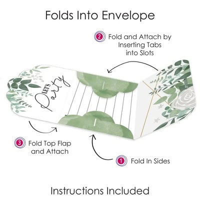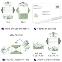 Boho Botanical Fold and Send Invitations includes a set of 8 Wedding, Baby Shower or Birthday Party invitations. This all-in-one set of invites can be folded into an envelope and comes with clear stickers for secure delivery. Splendid Surprise: Excite your partygoers with these unique and charming invites that turn into envelopes. Greenery invitations include fill-in-the-blank space to add your party details. Once assembled, you can directly hand the invites to your recipients or write out the address information on the backside and send your invite via snail mail. Easy Assembly: To transform your invite into an envelope, begin by folding the sides inward. Next, fold and attach the bottom flap by inserting the tabs into the slots of the side flaps. Finally, fold the top flap over and insert its tabs into the slots. Seal your envelope shut using a clear sticker. Practice assembling using the instruction card included. Premium Party Supply: Boho Botanical party invitations are professionally printed double-sided on quality cardstock paper with a photo-like shine. When folded, invite cards measure 6.25 inches wide x 4.25 inches tall, and when open, cards measure 9.5 inches wide x 11.75 inches tall. Made In The USA: Greenery Fold and Send Invitations are designed and manufactured at our Wisconsin facility using materials that are Made in the USA.