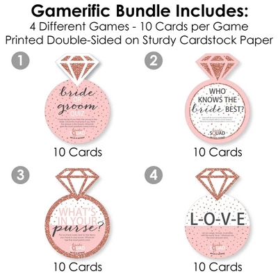 - Games Included: Who Knows The Bride Best, Bride or Groom Quiz, What’s in Your Purse, and Love