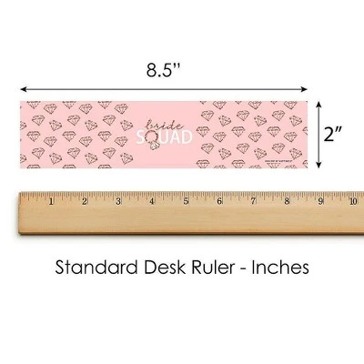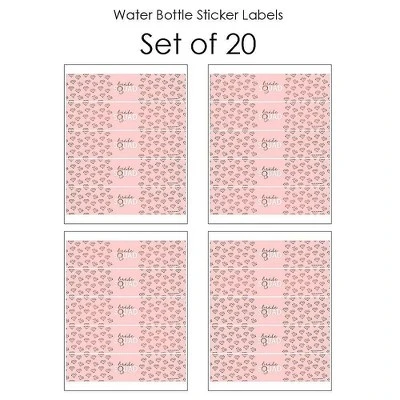 Bride Squad Water Bottle Sticker Labels INCLUDES 20 DIY water bottle labels. Bride Squad DIY party supplies are perfect for quickly dressing up any beverage bottle in your party theme. Water bottle stickers each SIZE 8.5″ wide x 2″ tall, perfect for any beverage bottle or container less than 8.5″ in diameter. EASY TO USE: Prepare your water bottles or containers by ensuring they are room temperature and dry. Removing the original bottle label is preferred but not necessary. Carefully peel one rose gold sticker label from the backing and adhere to a bottle, starting at the middle and pressing toward edge. Smooth label around container and chill your beverages if needed. HIGH QUALITY PARTY SUPPLIES: Bride Squad water bottle labels are professionally printed on a sticker paper with a glossy coating. They are waterproof and can be used on beverages that will be chilled, just be sure to apply prior to chilling. Add them to a rose gold bridal shower or bachelorette party beverage bar for an impressive, coordinated display. UNIQUE BEVERAGE BAR: Bride Squad Water Bottle Labels will make coordinated beverage area at your bridal shower or bachelorette party. Add Bride Squad Water Bottle Labels to standard water bottles, mini water bottles, soda bottles and single-serving juice containers. Water bottle labels can also be used on cylinder containers to create rose gold centerpieces. MADE IN THE USA: Bride Squad – Bridal Shower or Bachelorette Party Water Bottle Sticker Labels are designed and manufactured at our Wisconsin facility using materials that are Made in America. Please Note: Beverages in image are not included. Water Bottle Labels No-Mess Glitter Print: Our beverage labels are designed with a printed image of glitter, eliminating glitter flake while maximizing bling effect!