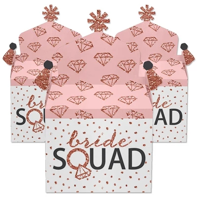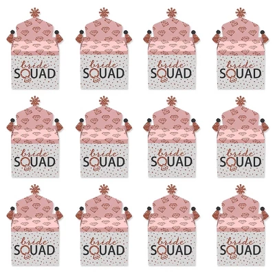 Gable Boxes INCLUDE: 12 Bride Squad-themed goodie party favor boxes. Each box SIZE measures 4.25 inches length x 3 inches width x 7.75 inches height. Gable favor boxes are ideal for small gifts and treats that are under 3.5 inches tall (height for storing items in closed box). FUN PARTY FAVORS: Use gable boxes for a unique party gift at any or celebration party. This small, closed favor box can be filled with baked goodies, party trinkets, or thank you gifts. Party guests will have fun with the mystery of what each party loot box will contain. PREMIUM PARTY SUPPLY: Gable treat boxes are professionally printed and double-sided on heavy-duty cardstock paper, with a photo-like shine. They are hand-folded, individually inspected, and then carefully packaged. SIMPLE ASSEMBLY: Bride Squad gable boxes will arrive flat. Allow time for the required assembly of each box. Gable boxes have crease lines and numbered tabs for easy folding. Packaging will include assembly instructions. MADE IN THE USA: Bride Squad Bridal Shower or Bachelorette Party goodie gable boxes are designed and manufactured at our Wisconsin facility using materials that are Made in the USA. Bride Squad goodie gable boxes use a No-Mess Glitter Print: Our DIY party decorations are designed with a printed image of glitter, eliminating glitter flake while maximizing bling effect!