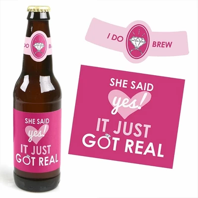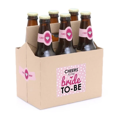Bride-To-Be Beer Gift Set INCLUDES 6 beer bottle sticker labels & 6 bottle neck labels in the classy pink I Do Brew theme, as well as 1 six-pack carrier with 4 pink and white classy bachelorette party or bridal shower stickers for decoration. Pink and White Beer bottle stickers each SIZE 3.5″ wide x 3″ tall, perfect for standard beer bottles or similarly sized soda bottles; Beer collar neck labels measure 3.5″ long x 1.5″ wide at the center. Beer bottle labels are quick to apply and will give your Bride-To-Be gift a personal touch! HIGH QUALITY BACHELORETTE PARTY SUPPLIES: Bride-To-Be beer bottle labels are professionally printed on a sticker paper with a glossy coating. They are waterproof and can be used on bottles that will be chilled, just apply prior to chilling. Use the beer kit as the perfect bridal shower or bachelorette gift or at the bridal shower or bachelorette beverage bar for an impressive, coordinated display. EASY TO USE: Prepare your beverage bottles by ensuring they are room temperature. Removing the original bottle label is not necessary but is preferred. Carefully peel one It’s Just Got Real sticker label from the backing and adhere to a bottle, starting at the edge and rolling to the opposite edge. Add the bottle neck label and place the completed bottle into the kraft paper carrier. Complete the beer gift kit by adding the remaining 4 stickers to the sides of the six-pack carrier. MADE IN THE USA: Bride-To-Be – Bridal Shower & Classy Bachelorette Party Beer Bottle Labels and Carrier is designed and manufactured at our Wisconsin facility using materials that are Made in the USA. Please Note: Beer in image is not included. Bride-To-Be Beer Bottle Labels No-Mess Glitter Print: Our beverage labels are designed with a printed image of glitter, eliminating glitter flake while maximizing bling effect!