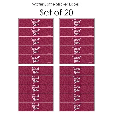 Burgundy Elegantly Simple Water Bottle Sticker Labels INCLUDES 20 DIY water bottle labels. Red Wine-Colored DIY party supplies are perfect for quickly dressing up any beverage bottle in your party theme. Water bottle stickers each SIZE 8.5″ wide x 2″ tall, perfect for any beverage bottle or container less than 8.5″ in diameter. EASY TO USE: Prepare your water bottles or containers by ensuring they are room temperature and dry. Removing the original bottle label is preferred but not necessary. Carefully peel one sticker label from the backing and adhere to a bottle, starting at the middle and pressing toward edge. Smooth label around container and chill your beverages if needed. HIGH QUALITY RED WINE-COLORED PARTY SUPPLIES: Burgundy Elegantly Simple water bottle labels are professionally printed on a sticker paper with a glossy coating. They are waterproof and can be used on beverages that will be chilled, just be sure to apply prior to chilling. Add them to a Baby or Bridal Shower, Anniversary, Retirement, or Birthday Party beverage bar for an impressive, coordinated display. UNIQUE BEVERAGE BAR: Burgundy Elegantly Simple Water Bottle Labels will make coordinated beverage area at your Baby or Bridal Shower, Anniversary, Retirement, or Birthday Party. Add Burgundy Elegantly Simple Water Bottle Labels to standard water bottles, mini water bottles, soda bottles and single-serving juice containers. Water bottle labels can also be used on cylinder containers to create Red Wine-Colored centerpieces. MADE IN THE USA: Burgundy Elegantly Simple – Party Water Bottle Sticker Labels are designed and manufactured at our Wisconsin facility using materials that are Made in America. Please Note: Beverages in image are not included.