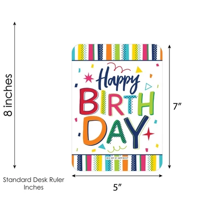 Cheerful Happy Birthday Bingo Cards and Markers INCLUDES 18 game cards, 18 perforated marker sheets, 1 perforated call sheet, and game instructions. MUST-HAVE PARTY SUPPLY: Bingo is an easy and classic Cheerful Happy Birthday game that everyone will have fun playing. Birthday Party Bingo Cards and Markers give this classic game a fresh look with Cheerful Happy Birthday playing cards with Birthday Celebration Words and Images instead of numbers. HOW TO PLAY: Play traditional bingo rules or take out with your group and play bar bingo. Like gift bingo, bar bingo is played by observing your crowd and marking the space when you see a corresponding item. Begin traditional play by the designated bingo leader pulling a caller chip from the bowl. Each guest covers the called word on their card with square marker. Continue until a guest has covered a row in any direction – vertically, horizontally, or diagonally and calls out “BINGO!”. HIGH-QUALITY: Cheerful Happy Birthday Bingo Cards and Markers are professionally printed and double-sided on sturdy cardstock paper. They are individually inspected and carefully packaged by hand. Each card measures 5” Wide x 7” Tall, perforated marker sheets measure 2.75” Wide x 5” Tall and individual markers measure 0.75” Wide x 0.75” Tall. MADE IN THE USA: Cheerful Happy Birthday Bingo Game is designed and manufactured at our Wisconsin facility using materials that are Made in the USA.