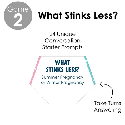 - 2-in-1 Game Includes “Dirty Diaper Game” and “What Stinks Less?”