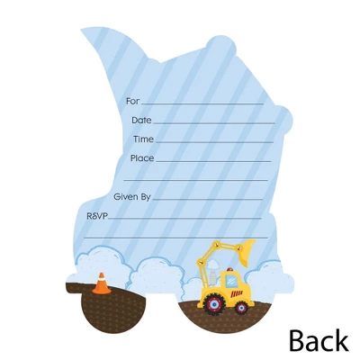 Construction Truck Fill-In the Blank Invitation Set INCLUDES 12 under construction party invitations and 12 premium white envelopes. Construction Truck fill-in invitation is perfect for any event. The construction zone theme is great for a baby shower or birthday party. Under construction party invitations SIZE 5 inches by 6.75 inches. The included envelopes measure 5 inches by 7 inches. The back of each Construction Truck baby shower or birthday party invitation has space to add your party details: For: Date: Time: Place: Given By: RSVP: PREMIUM PARTY INVITATIONS: Construction zone party invitation are professionally printed on heavy-duty card stock paper with a photo-like shine. They are individually inspected, then carefully packaged with our exclusive squiggle flap envelopes, making this Construction Truck stationary set a must-have for any baby shower or birthday party. MADE IN THE USA: Construction Truck – Baby Shower or Birthday Party Invitations are designed and manufactured at our Wisconsin facility using materials that are Made in the USA.