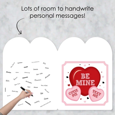 Conversation Hearts Jumborific Card INCLUDES 1 giant greeting card made of corrugated plastic. Send a big happy message with an oversized card. GIANT GREETING CARD: With a heart shaped top, front of card reads “Happy Valentine’s Day”. Open card to “Be Mine, Cutie Pie, Text Me” message that is layered for extra dimension. Left side of inside will be blank with lots of room to handwrite personal messages. VALENTINE’S DAY CARD: Wow a special occasion when you gift a Jumborific Card. The thick and sturdy plastic gives this card a unique display when in standing position and to be used for a memorable keepsake. Perfect way to say Happy Valentine’s Day. HIGH-QUALITY CARD: Conversation Hearts Jumborific Card SIZE 16.5 inches wide (folded) x 22 inches tall. This giant greeting card is professionally printed on heavy-duty corrugated plastic with white edges. MADE IN THE USA: Big shaped Jumborific Card is designed and manufactured at our Wisconsin facility using materials that are Made in the USA.