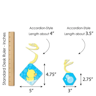 Party Decoration Swirls – Set of 40 INCLUDES 4 different shapes, 10 count per shape, that hang below an accordion-style spiral with included clear hooks. 10 swirls SIZE 5 inches x 5 inches with length about 11 inches. 10 swirls, SIZE 7.75 inches x 5.5 inches with length about 9 inches. 10 swirls, SIZE 5 inches x 4.75 inches with length about 4 inches. 10 swirls, SIZE 3 inches x 2.75 inches with length about 3.5 inches. PERFECT FOR ANY EVENT: With different hanging lengths and a variety of shapes and sizes, Party Decoration Swirls are perfect for baby shower or birthday parties. Add a pop of color when displayed over the gift table or dessert buffet. Or, add your own string if you would like them to hang lower in your party space. EASY TO USE: Each decoration swirl in the 40-piece set has a pre-cut hole for easy assembly using the included clear hooks. Party decoration swirls will arrive flat. Take a clear hook and insert the bottom bar into the pre-cut hole. Once the clear hook is fastened, gently stretch the swirl and hang it up. HIGH-QUALITY PARTY SUPPLY: Ducky Duck Party Decoration Swirls are professionally printed and double-sided on heavy-duty cardstock paper. They are individually cut, inspected, and carefully packaged. Each swirl will use one clear hook. MADE IN THE USA: Party Decoration Swirls are designed and manufactured at our Wisconsin facility using materials that are Made in the USA.