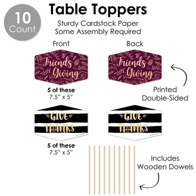 - Table Toppers Include 10 Total Centerpiece Sticks With 2 Designs – 5 Count Each, 10 Wooden Dowels, And Assembly Stickers