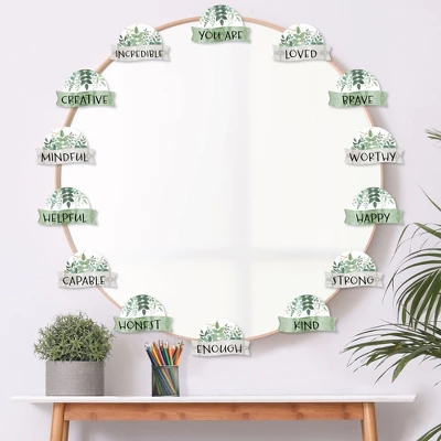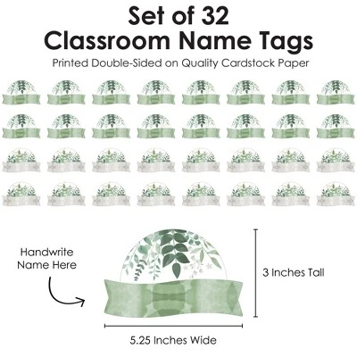Eucalyptus Greenery Classroom Name Tags INCLUDES a set of 32 name cards. These blank DIY shaped name tags come with 2 different designs (16 of each) with a designated space at the bottom to handwrite names. Name tags are perfect to use on bulletin boards, desks, cubbies, doors, and more! Cute Decor: Create a vibrant and organized classroom with our boho botanical themed name tags. These charming name cards add a playful touch to any learning space that will inspire and delight your students. Add instant style by displaying these cards throughout your classroom. Easy To Use: With the space at the bottom of each card, easily handwrite students’ names and attach them to desks or cubbies with your own adhesive for a fun and exciting appearance. You can also fill in your own words to create school supply labels, positive affirmations, flashcards, and more! High-Quality Supply: greenery name labels are professionally printed double-sided on quality cardstock paper. Each name tag measures 5.25 inches wide by 3 inches tall. Easily elevate your classroom decor when you use these name tags! Made In The USA: Eucalyptus Greenery Name Cards are designed and manufactured at our Wisconsin facility using materials that are Made in the USA.