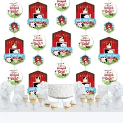 Farm Animals Hanging Vertical Decorations INCLUDE 30 shaped pieces, 1 roll clear cording, and assembly stickers. Farm Animals Vertical Decorations are fun and versatile party danglers for your next Baby Shower or Birthday Party. ROOMERIFIC: Farm Animals Hanging Vertical Decorations can be displayed at any lengths you choose and make an attractive backdrop for your next Baby Shower or Birthday Party. Shaped pieces come in 3 sizes of 10 each, with the following specifications: 10 at 8.5 x 11 inches, 10 at 6.25 x 6.25 inches, and 10 at 4 x 4.5 inches. Hang near a wall to capture fun group photos, or place throughout the room to create a unified theme. They look amazing when coordinated above gift and buffet tables. DIY DONE RIGHT: Get ready for guests in a snap with this colorful, easy-to-assemble, 30-piece Farm Animals Hanging Party Decorations kit. Printed double-sided, each shaped piece includes top and bottom tabs for easy hanging. Simply interlock clear cording into each piece and secure with provided clear stickers. HIGH-QUALITY DECOR: Farm Animals Hanging Vertical Decorations are professionally printed on heavy-duty cardstock paper. Each piece is individually inspected and carefully packaged by hand. Requires some simple do-it-yourself assembly. Use provided clear cording to display decorations however you prefer. MADE IN THE USA: Farm Animals Hanging Vertical Decorations are designed and manufactured at our Wisconsin facility using materials that are Made in the USA.
