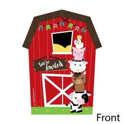 Farm Animals Fill-In the Blank Invitation Set INCLUDES 12 barnyard party invitations and 12 premium white envelopes. Farm Animals fill-in invitation is perfect for any event. The Farm Animals theme is great for a baby shower or birthday party. Farm Animals party invitations SIZE 5 inches by 7 inches. The included envelopes measure 5 inches by 7 inches. The back of each Farm Animals baby shower or birthday party invitation has space to add your party details: For: Date: Time: Place: Given By: RSVP: PREMIUM PARTY INVITATIONS: Barnyard party invitation are professionally printed on heavy-duty card stock paper with a photo-like shine. They are individually inspected, then carefully packaged with our exclusive squiggle flap envelopes, making this Farm Animals stationary set a must-have for any baby shower or birthday party. MADE IN THE USA: Farm Animals – Baby Shower or Birthday Party Invitations are designed and manufactured at our Wisconsin facility using materials that are Made in the USA.