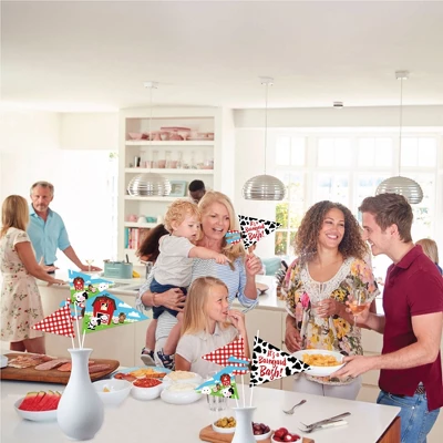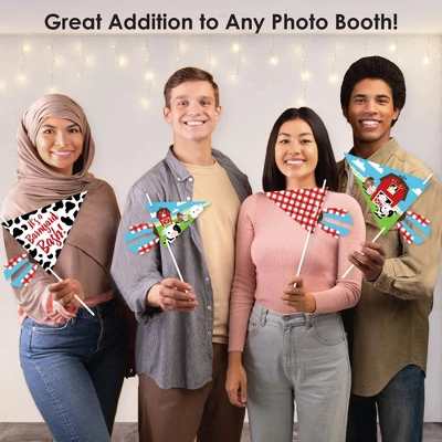 Big Dot of Happiness Farm Animals Pennant Flag Centerpieces include a set of 20 paper triangle flags, 10 paper tassel shapes, paper sticks, and adhesive dots. Pennant centerpieces will help create an impressive look at your Baby Shower or Birthday Party. Party Decor: Make a statement with the Barnyard table decorations at your celebration. Insert them into vases or floral arrangements and place them at the center of your tablescape. They are the perfect way to accent your tables and are also a great addition to any photo booth. Easy DIY: Farm Animals flag decorations come with sticks and adhesive dots for easy assembly. Simply insert a stick into the holes on the side of a pennant triangle and attach a paper tassel with an included adhesive dot. Then, begin arranging your centerpiece decorations! High-Quality Supply: Farm Animals flags are professionally printed double-sided on heavy-duty cardstock paper with a photo-like shine. Large pennants measure 8.5 inches wide by 7 inches tall, small pennants measure 6 inches wide by 5 inches tall, and paper tassels measure 3 inches wide by 4 inches tall. Assembled In The USA: Farm Animals Pennant Flag Centerpieces are designed and manufactured at our Wisconsin facility using materials that are Made in the USA – Sticks Made in China.