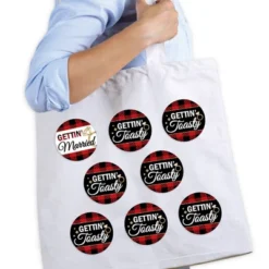 Flannel Fling Before The Ring Pinback Buttons INCLUDES 8 sturdy, round pinback buttons. Each set of 8 Buffalo Plaid Bridal buttons arrives assembled and ready for showing the world your special message. MESSAGES MADE-EASY: Flannel Fling Before The Ring Pinback Buttons are round-shaped, measuring 3 inches in diameter. Each set includes 1 “Gettin’ Married” and 7 “Gettin’ Toasty”, easy-to-wear buttons; perfect for making a statement! Pass out to your group at bachelorette parties, bridal showers, and special gatherings, or hand out individually. ORIGINAL BUTTON SET: These fully assembled buttons have a metal shell with an easy-open, straight metal clasp backer. You can pin easily onto any cloth-like materials such as canvas tote bags, jackets, shirts, backpacks, and hats! Designed to be trendy and stylish, this set of 8 full-color buttons will get all the attention. STURDY AND DURABLE: Flannel Fling Before The Ring Pinback Buttons are made with sturdy, metal backers and shells with a glossy finish. Buttons are reusable and can easily be cleaned as needed. MADE IN THE USA: Flannel Fling Before The Ring Pinback Buttons are designed and manufactured at our Wisconsin facility using materials that are Made in the USA. Flannel Fling Before The Ring Pinback Buttons use a No-Mess Glitter Print: Our buttons are designed with a printed image of glitter, eliminating glitter flake while maximizing bling effect!