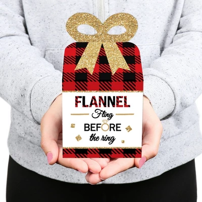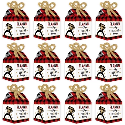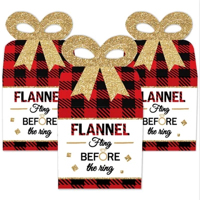 Bow Boxes INCLUDE: 12 “Flannel Fling Before the Ring”-themed square favor gift boxes. Each box SIZE measures 3.5 inches length x 3.5 inches width x 7 inches height. Bow boxes are ideal for small gifts and treats that are under 3.5 inches tall (height for storing items in closed box). When assembled and closed, each box creates a 3D paper bow-shaped top with a square bottom. CUTE GIFT BOXES: This small, closed favor box can be filled with homemade treats (fun cupcake box), party trinkets, or thank you gifts. At the party, have each guest fill their red and black buffalo plaid bow box with snacks from a candy buffet or use as a party loot box. Guests will have fun guessing what surprise each favor gift box contains. PREMIUM PARTY SUPPLY: Bow boxes are professionally printed and double-sided on heavy-duty cardstock paper, with a photo-like shine. They are hand-folded, individually inspected, and then carefully packaged. EASY ASSEMBLY: “Flannel Fling Before the Ring” bow boxes will arrive flat. Each bow box has crease lines and numbered tabs for easy folding. Finish the DIY assembly by interlocking top of box to create a three-dimensional bow. Packaging will include assembly instructions. MADE IN THE USA: The red and black buffalo plaid Wedding Shower, Bachelorette or Engagement Party bow boxes are designed and manufactured at our Wisconsin facility using materials that are Made in the USA. “Flannel Fling Before the Ring” bow boxes use a No-Mess Glitter Print: Our DIY favor boxes are designed with a printed image of glitter, eliminating glitter flake while maximizing bling effect!