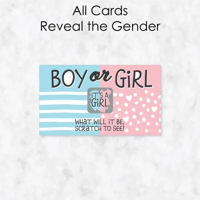Blue & Pink Scratch-Off Cards INCLUDES 22 Pregnancy Announcement game cards: 22 scratch offs with hidden message βITβS A GIRL!β. FUN PARTY GAME: Baby Gender Reveal scratch-off cards will be enjoyed by Team Boy or Team Girl Party guests of all ages. Each game card measures 2.75β tall x 4.75β wide. 3 WAYS TO PLAY: Simple – Greet guests as they arrive and hand them a scratch-off card. Quick – Display one scratch-off card at each place setting and have guests play before eating. HIGH-QUALITY PARTY SUPPLIES: Blue & Pink Scratch-Off Cards are professionally printed on heavy-duty cardstock paper with a photo-like shine. They are individually inspected and carefully packaged by hand. This fun Baby Shower Party game will arrive ready to use at your party. MADE IN THE USA: Baby Gender Reveal Team Boy or Team Girl Party Game Scratch Off Cards are designed and manufactured at our Wisconsin facility using materials that are Made in the USA.