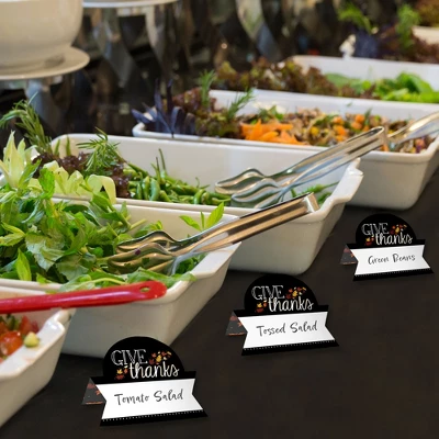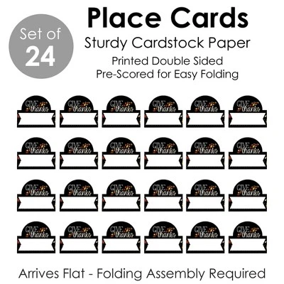 Give Thanks Place Cards INCLUDES 24 individual cards that measure 3.5” wide x 2.5” tall when assembled. Easy to use, these tabletop accents are perfect to use at your next Thanksgiving Party. VERSATILE IN USE: Whether it’s a small party or large gathering, the Autumn Leaves Place Cards can be used in a variety of ways. Handwrite words in the blank space and then set them on the buffet table, as part of a place setting, or consider using them for an icebreaker activity. EYE-CATCHING DESIGN: Featuring crisp graphics with an innovative cut design, Give Thanks Place Cards will easily draw in attention without taking up too much space. To assemble, push back the top outer edge, revealing the half-circle top. Fold along the pre-scored line in the center to create the tent shape, and then display! HIGH-QUALITY: Fall Leaf Place Cards are professionally printed double-sided on sturdy cardstock paper with a photo-like shine. They are individually inspected and carefully packaged by hand. Place Cards will arrive flat with some folding assembly required. MADE IN THE USA: Give Thanks Place Cards are designed and manufactured at our Wisconsin facility using materials that are Made in the USA.