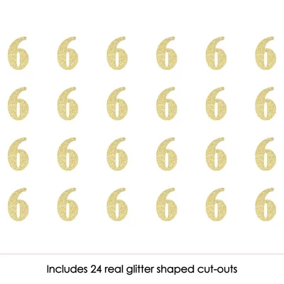 Gold Glitter Number 6 Confetti INCLUDES 24 no-mess real gold glitter cut-out number 6s for a birthday party. Number 6 gold confetti is cut from no-mess glitter paper, making them perfect for table decorations and ensuring easy clean up. PERFECT PARTY DECORATIONS: Gold Glitter 6 cut-out numbers come in a set of 24 and MEASURE 2.25 inches x 1.5 inches. Real gold glitter number cut outs look great scattered down buffet and dining tables, hole-punched and tied as tags on party favors, or adhered to glassware and candy buffet jars as party decorations. EASY TO USE: No-mess shaped cut out glitter confetti will help you complete all your DIY party ideas! Gold Glitter 6 – No-Mess Real Gold Glitter Cut-Out Numbers Confetti will arrive cut and ready to use at your birthday party celebration. HIGH-QUALITY: Gold Glitter 6 Cut-Out Numbers are professionally cut from heavy-duty, cardstock glitter paper. They are then inspected for quality while being carefully hand-packed in sets of 24. Gold glitter 6 number confetti uses NO-MESS Real Gold Glitter Paper with white reverse side, eliminating glitter flake while maximizing bling effect!