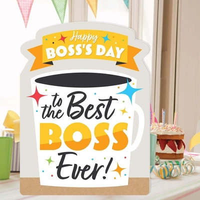Happy Boss’s Day Jumborific Card INCLUDES 1 giant greeting card made of corrugated plastic. Say a big Happy Boss’s Day to show your best boss ever with an oversized card. GIANT GREETING CARD: With a banner shaped top, front of card reads “Happy Boss’s Day, to the Best Boss Ever!”. Open card to “Thank You for all that You Do!” message that is layered for extra dimension. Left side of inside will be blank with lots of room to handwrite personal messages. THANK YOU, CARD: Wow an employer, leader, or supervisor when you gift a Jumborific Card. The thick and sturdy plastic gives this card a unique display when in standing position and to be used for a memorable keepsake. HIGH-QUALITY PARTY GIFT: Happy Boss’s Day Jumborific Card SIZE 16.5 inches wide (folded) x 22 inches tall. This giant greeting card is professionally printed on heavy-duty corrugated plastic with white edges. MADE IN THE USA: Big shaped Jumborific Card is designed and manufactured at our Wisconsin facility using materials that are Made in the USA.