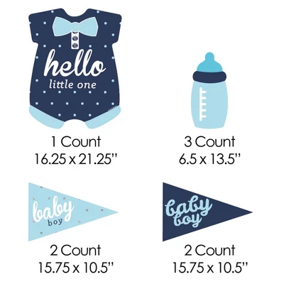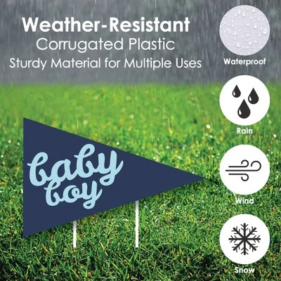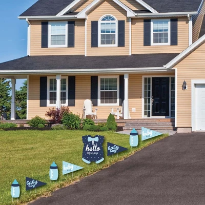 Pennant Flag and Bottle Lawn Decorations INCLUDES 8 coordinating Hello Little One – Blue and Navy yard decorations: 1 Large Hello Little One, 3 Bottles, 4 Pennant Flag; and 16 stakes for displaying. Easy assembly instructions are also included. PERFECT FOR ANY LOCATION! Hello Little One – Blue and Navy Yard Signs SIZE Large Hello Little One 16.25″ x 21.25″; Bottle 6.5″ x 13.5″; Pennant Flag 15.75″ x 10.5″. Pennant flag and bottle yard decor is an easy way to decorate your home or business for baby shower. Both adults and kids will love these Hello Little One – Blue and Navy party supplies. EASY TO USE: Hello Little One – Blue and Navy Yard Sign & Outdoor Lawn Decorations are professionally printed and cut, making assembly quick and easy. Simply insert two heavy-duty stakes into each boy baby shower yard ornament and press into the ground to display. HIGH-QUALITY YARD DECORATIONS: Pennant Flag and Bottle Yard Signs are professionally printed on durable, corrugated plastic. 8-Piece yard decorations are waterproof and can be used outdoors. Blue and Navy lawn decor can be displayed in wind, snow and rain without any worry. MADE IN THE USA: Hello Little One Boy – Yard Sign & Outdoor Lawn Decorations are designed and manufactured at our Wisconsin facility using materials that are Made in the USA.