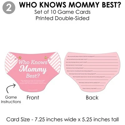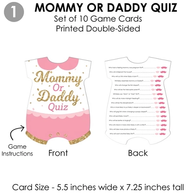 - Games Included: Who Knows Mommy Best, Mommy or Daddy Quiz, What’s in Your Purse and Oh Baby
