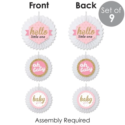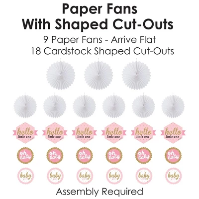 Hello Little One Paper Fans INCLUDES 9 Paper Fans, 18 Shaped Cut-Outs, and Assembly Stickers. Easy set up with all the necessary items included. These decorative fans will surely make your next Baby Shower memorable. FESTIVE FUN: Pink and Gold “Baby Girl!” Paper Fans Tissue Decoration Kit are versatile in use for any Baby Shower. You can hang them from the ceiling, on the walls, or over a mantelpiece. EASY DIY ASSEMBLY: Hello Little One Paper Fans require some assembly before use. Start by removing the plastic strip from the tape. Unfold the fan, pressing its two ends together firmly to form a circle. Adhere a shaped cut-out using assembly stickers in the center. Use the attached string to hang the decoration. PREMIUM DECOR: Shaped cut-outs featured in the Pink and Gold “Baby Girl!” Paper Fans Tissue Decoration Kit are professionally printed on heavy-duty paper with a photo-like shine. All items are individually inspected and carefully packaged. Fans arrive flat and require easy assembly. MADE IN THE USA: Hello Little One Paper Fans are designed and manufactured at our Wisconsin facility using materials that are Printed in the USA – Fans Made in China. Hello Little One Paper Fans use a No-Mess Glitter Print: Our Cut-Outs are designed with a printed image of glitter, eliminating glitter flake while maximizing bling effect!
