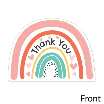 Shaped Thank You Cards Set INCLUDES 12 Hello Rainbow Baby Shower or Birthday Party thank you cards and 12 premium white envelopes. Boho Rainbow Shaped Thank You Cards are the perfect end to any event. Boho Rainbow party thank you note cards SIZE 7 inches by 5 inches. The included envelopes measure to fit 7 inches by 5 inches cards. The back of each Hello Rainbow Baby Shower or Birthday Party thank you has space to write a personal message of thanks. PREMIUM PARTY THANK YOU CARDS: Hello Rainbow party thank you cards are professionally printed on heavy-duty cardstock paper with a photo-like shine. They are individually inspected, then carefully packaged with our exclusive squiggle flap envelopes, making this Hello Rainbow stationery set a must-have for any Baby Shower or Birthday Party. MADE IN THE USA: Hello Rainbow Party Thank You Cards are designed and manufactured at our Wisconsin facility using materials that are Made in America.