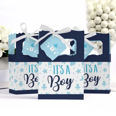 It’s a Boy Favor Boxes INCLUDES 12 blue party favor bags, 12 gift tags and coordinating satin ribbon. Classic favor boxes are a party must-have. Boy theme party supplies are great for a baby shower. It’s a Boy Party Favor Boxes SIZE 4.75 inches wide x 4.75 inches high x 2.25 inches deep (fillable inside space) with a total height of 7 inches, including the handle. The coordinating gift tags and ribbon makes these 12 blue party favor boxes a complete treat bag party kit that everyone will love. BOY PARTY SUPPLIES: Baby shower favor boxes will hold a variety of treats, prizes and party favors for your guests. Fill them with baked goodies, party trinkets or thank you gifts for adorable It’s a Boy party favors! PREMIUM PARTY FAVOR BOXES: It’s a Boy party favor boxes are professionally printed on heavy-duty cardstock paper with a photo-like shine. They are hand-folded and individually inspected, then carefully packaged. Favor boxes will arrive flat, partially assembled. Finishing assembly is required but it is easy. Once assembled, add the It’s a Boy gift tag with the included ribbon for perfect party favors! MADE IN AMERICA: It’s a Boy – Baby Shower Favor Boxes are designed and manufactured at our Wisconsin facility.