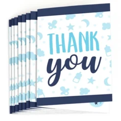 It’s a Boy Thank You Note Card Set INCLUDES 8 boy thank yous and premium white envelopes. It’s a Boy thank you notes are perfect for any event. The boy theme is great for a baby shower. It’s a Boy note cards SIZE 5 inches by 7 inches, folded. The included envelopes measure 5.75 inches by 3.75 inches. The inside of each It’s a Boy thank you card stationery has a fun graphic as well as space to write a special note to friends and family. PREMIUM THANK YOU CARDS: It’s a Boy thank you cards are professionally printed on heavy-duty card stock paper with a photo-like shine. They are hand-folded and individually inspected, then carefully packaged with our exclusive squiggle flap envelopes, making this boy stationary set a must-have for baby showers. MADE IN THE USA: It’s a Boy – Baby Shower Thank You Cards are designed and manufactured at our Wisconsin facility using materials that are Made in the USA.