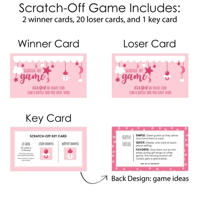 It’s a Girl Scratch-Off Cards INCLUDES 22 girl scratch-off cards: 20 “loser” cards and 2 “winner” cards. FUN PARTY GAME: It’s a Girl Scratch-Off Cards will be enjoyed by baby shower guests of all ages. Each game card measures 2.75″ tall x 4.75″ wide. Winner and loser game cards are packaged separately so it is easy to pre-select the game winners if you choose. 3 WAYS TO PLAY: Simple – Greet guests as they arrive and hand them a scratch-off card. Quick – Display one scratch-off card at each place setting and have guests play before eating. Favorite – Give scratch-off cards out as mini prizes during other party games. The winning scratch off card(s) gets a grand prize. HIGH-QUALITY PARTY SUPPLIES: It’s a Girl Scratch-Off Cards are professionally printed on heavy-duty cardstock paper with a photo-like shine. They are individually inspected and carefully packaged by hand. This fun baby shower game will arrive ready to use at your party. MADE IN THE USA: It’s a Girl – Baby Shower Game Scratch-Off Cards are designed and manufactured at our Wisconsin facility using materials that are Made in the USA.