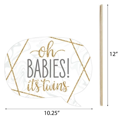 20-Piece Baby Shower Photo Booth Props Kit INCLUDES 20 It’s Twins – Gold photo booth props, 20 sticks and stickers for assembly. EASY ASSEMBLY: Simply attach the printed DIY photo booth props to the sticks with included reinforcing stickers. PERFECT FOR ANY CROWD! Photo booth props are fun baby shower party supplies for adults and kids – everyone will love the funny faces on these It’s Twins – Gold baby shower photo booth props. Take entertaining and shareable party photos of your friends and family while making memories with these funny photo booth props! BABY SHOWER DECORATIONS: There are many fun ways to use these cute photo booth props! Use as intended at home, school or work and take party photos to share; add them to vases and floral arrangements as a fun baby shower centerpiece; or accent your baby shower candy buffet by displaying them in apothecary candy jars! HIGH-QUALITY PARTY SUPPLIES: It’s Twins – Gold baby shower photo booth props are professionally printed on thick cardstock paper. They will arrive cut out and ready to assemble with the included sticks and stickers. Twins photo booth props use a No-Mess Glitter Print: Our photo booth props are designed with a printed image of glitter, eliminating glitter flake while maximizing bling effect! MADE IN THE USA: It’s Twins – Gold – Baby Shower Photo Booth Props Kit is designed and manufactured at our Wisconsin facility using materials that are Made in America.