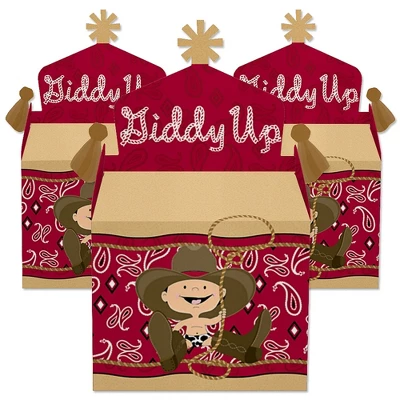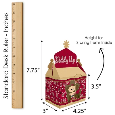 Gable Boxes INCLUDE: 12 Little Cowboy – Western-themed goodie party favor boxes. Each box SIZE measures 4.25 inches length x 3 inches width x 7.75 inches height. Gable favor boxes are ideal for small gifts and treats that are under 3.5 inches tall (height for storing items in closed box). FUN PARTY FAVORS: Use gable boxes for a unique party gift at any celebration party. This small, closed favor box can be filled with baked goodies, party trinkets, or thank you gifts. Party guests will have fun with the mystery of what each party loot box will contain. PREMIUM PARTY SUPPLY: Gable treat boxes are professionally printed and double-sided on heavy-duty cardstock paper, with a photo-like shine. They are hand-folded, individually inspected, and then carefully packaged. SIMPLE ASSEMBLY: Little Cowboy – Western gable boxes will arrive flat. Allow time for the required assembly of each box. Gable boxes have crease lines and numbered tabs for easy folding. Packaging will include assembly instructions. MADE IN THE USA: Little Cowboy – Western Baby Shower or Birthday Party goodie gable boxes are designed and manufactured at our Wisconsin facility using materials that are Made in the USA.