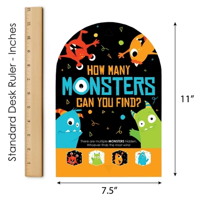 Monster Bash Hide and Find Game INCLUDES 1 sign with a built-in stand and 48 hexagon game pieces that you can hide for an exhilarating scavenger hunt at your Birthday Party or Baby Shower. Easy Assembly: Monster Bash game sign comes with built-in stand and requires some easy DIY assembly. To display your sign, fold the sides of the stand towards the center. Then, fold down the support piece of the stand until it rests in the notches. How To Play: Hide and find game sign shows the design of each hexagon piece, so display on a table where everyone can see. Then, find creative places to hide the game pieces around your venue. Finally, send your guests to hunt for the pieces. Whoever finds the most pieces wins! For a twist, divide the guests into teams and assign each team a piece to hunt for. High-Quality Supply: Little Monster Themed Hide and Find Game is professionally printed double-sided on heavy-duty cardstock paper with a photo-like shine. Sign measures 7.5” wide by 11” tall and hexagon pieces measure 2.25” wide by 2.25” tall. Made In The USA: Monster Bash Hide and Find Game is designed and manufactured at our Wisconsin facility using materials that are Made in the USA.