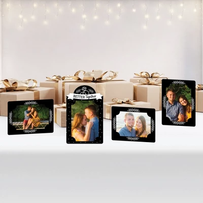 Mr. and Mrs. Paper Photo Frames includes a set of 12 picture frames with stand that are suitable for 4×6 photographs. Six vertical frames come with a round shaped top and the other six frames come in a standard rectangular shape that can be displayed horizontally or vertically. Decorative Display: Show off your guest of honor’s photos with the Mr. and Mrs. paper frames. Paper photo frames are perfect for displaying pictures on bookshelves, welcome tables, tablescape centerpieces, and fireplace mantel decorations. Easy Assembly: Attach the stand to the frame by inserting the tabs into corresponding slots. Next, fold the sides of the stand towards the center and fold down the support piece of the stand until it rests in the notches. Finally, secure your photos using the corner tabs! High-Quality Supply: Mr. and Mrs. paper frames are professionally printed double-sided on heavy-duty cardstock paper with a photo-like shine. Frame with round top measures 5.5 inches wide by 8.75 inches tall. Standard rectangle frame measures 7.5 inches wide by 5.5 inches tall. Each stand measures 5.5 inches wide by 5.5 inches tall. Made In The USA: Mr. and Mrs. Paper Photo Frames are designed and manufactured at our Wisconsin facility using materials that are Made in the USA.