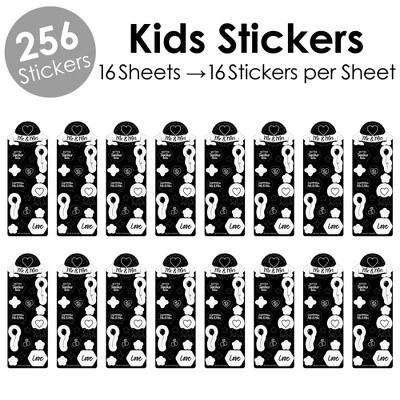 Mr. and Mrs. Black and White Favor Kids Stickers INCLUDES: 16 matching sticker sheets with 16 stickers per sheet for total of 256 stickers. STICKERS FOR KIDS: This 256 black and white sticker pack, featuring stars and balloons, are easy-to-peel stickers for kids. Kids will have fun being creative with the many uses of cool Mr. and Mrs. Black and White stickers. FUN PARTY FAVOR: Add Kids Stickers to goodie bags of an Mr. and Mrs. Black and White bridal shower or wedding! Each sheet is perfect for handing out as party favor or use as the prize winner to party games. HIGH-QUALITY PARTY SUPPLIES: Mr. and Mrs. Black and White Kids Stickers set includes 16 matching sticker sheets SIZE 2.5 inches wide x 7.5 inches tall. Each sticker sheet is professionally printed on easy-to-peel sticker paper with 16 stickers per sheet. MADE IN THE USA: Kids Stickers are designed and manufactured at our Wisconsin facility using materials that are Made in the USA.