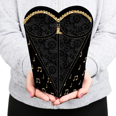 Nash Bash Shaped Favor Boxes INCLUDES 12 rose gold party favor bags in a unique heart-shaped design. Shaped favor boxes are a party must-have for any bachelorette party. Nash Bash Party Favor Boxes SIZE 8 inches high x 6.25 inches wide at the top x 3-inch square base. UNIQUE PARTY SUPPLIES: Bachelorette party favor boxes will hold a variety of treats, prizes and party favors for your guests. Fill them with baked goodies, party trinkets or thank you gifts for adorable Nashville party favors! PREMIUM PARTY FAVOR BOXES: Nash Bash gift boxes are professionally printed on heavy-duty cardstock paper with a photo-like shine. They are hand-folded and individually inspected, then carefully packaged. Favor boxes will arrive flat, partially assembled. Finishing assembly is required but it is easy. MADE IN AMERICA: Nash Bash – Bachelorette Party Favors – Gift Favor Boxes for Women are designed and manufactured at our Wisconsin facility using materials that are Made in America. Nashville Favor Boxes use a No-Mess Glitter Print: Our favor boxes are designed with a printed image of glitter, eliminating glitter flake while maximizing bling effect!