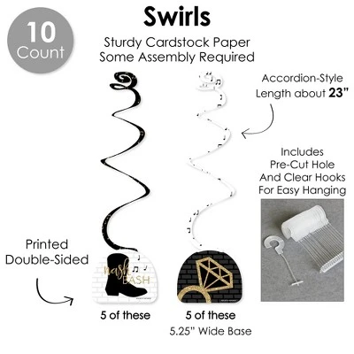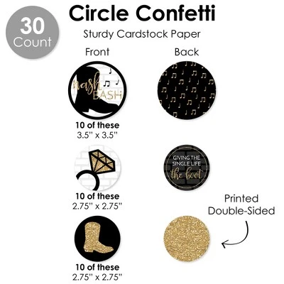 SWIRLS includes: 10 total swirls with 2 designs – 5 count per design, that hang with an accordion-style spiral. Professionally printed double-sided, the Nash Bash decoration swirls come with a 5.25” wide base and a spiral length of about 23” long. Each decoration swirl comes with a pre-cut hole and clear hooks for easy assembly. BUNTING BANNER includes: letter and themed pennants, perfect for your Black & Gold Music Themed Bachelorette or Bridal Shower Party. Each pennant measures 5” wide x 7.25” tall. Pennants are numbered in sequence and ribbon is included for easy assembly. TABLE TOPPERS includes: 10 centerpiece sticks that come with two shape cut-out designs, each professionally printed double-sided. The centerpiece shapes measure 7.5” wide x 5” tall. To use as centerpieces or photo props for your Bachelorette or Bridal Shower Party, assembly stickers are included for the easy DIY required assembly. CIRCLE CONFETTI includes: 30 paper circles with 2 different sizes – 10 large circles, size 3.5” and 20 small circles, size 2.75”. Professionally printed double-sided, the Nash Bash circle confetti can be placed flipped over for added variety. Scatter around your table for a delightful accent. MADE IN THE USA: Nash Bash Decor Galore Party Pack is designed and manufactured at our Wisconsin facility using materials that are Made in the USA. Nash Bash Decor Galore Party Pack uses a No-Mess Glitter Print: Our Party Pack is designed with a printed image of glitter, eliminating glitter flake while maximizing bling effect!